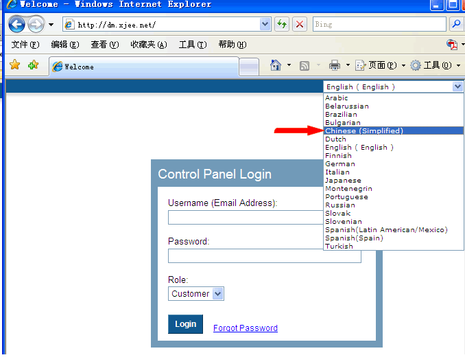 直接访问 http://dm.xjee.net 或者 登录客服服务中心 http://xjee.net 在域名管理界面上点"解析".进入域名解析频道,然后从右上角选择语言为中文“Chinese”