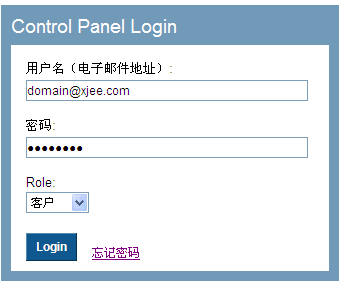 输入域名注册email(与本站注册email相同),输入登录密码(初始密码为本站账号密码)登录。如忘记密码,可找在线客服取回(发送到您的注册邮箱)。