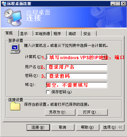 在开始菜单,运行 ,输入 mstsc ,回车,打开远程桌面登陆界面,输入远程电脑IP地址,输入远程电脑可以用来远程登录的账户名和口令。